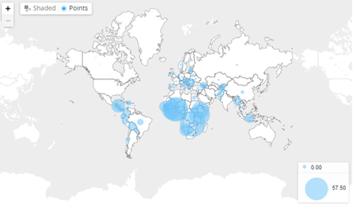 上の地図では、青い〇の大きさで貧困率を表しています。