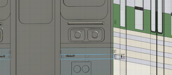 鉄道ファンじゃない人なら「だからなに?」と思うだろうが、113系スカ色とキハ38系久留里線色というかつて千葉県を走った2両を再現し、並ばせることができたのだ。今までの努力が一気に報われた気がする。今はキハ38は国内で走っているのは1両だけになってしまい、113系もJR西日本でのみ運用している。しかも両車両ともこの塗装で走っている編成は消滅している(多分)。すでに見れなくなってしまった光景を再現するのも、Fusion360のまたはcad鉄の魅力かもしれない。