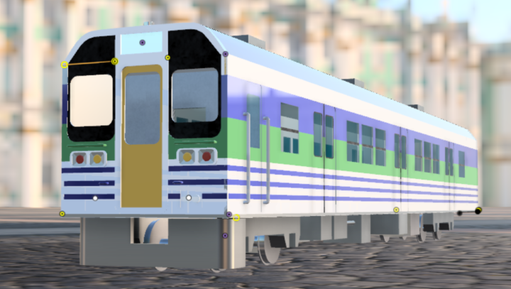 色が少し違う、とか方向幕がないとかスカートがついてるとかまだまだ実物には程遠いですが結構近いと思います。今回初めてFusionのシーンという機能を使いましたが、結構かっこいいですね!